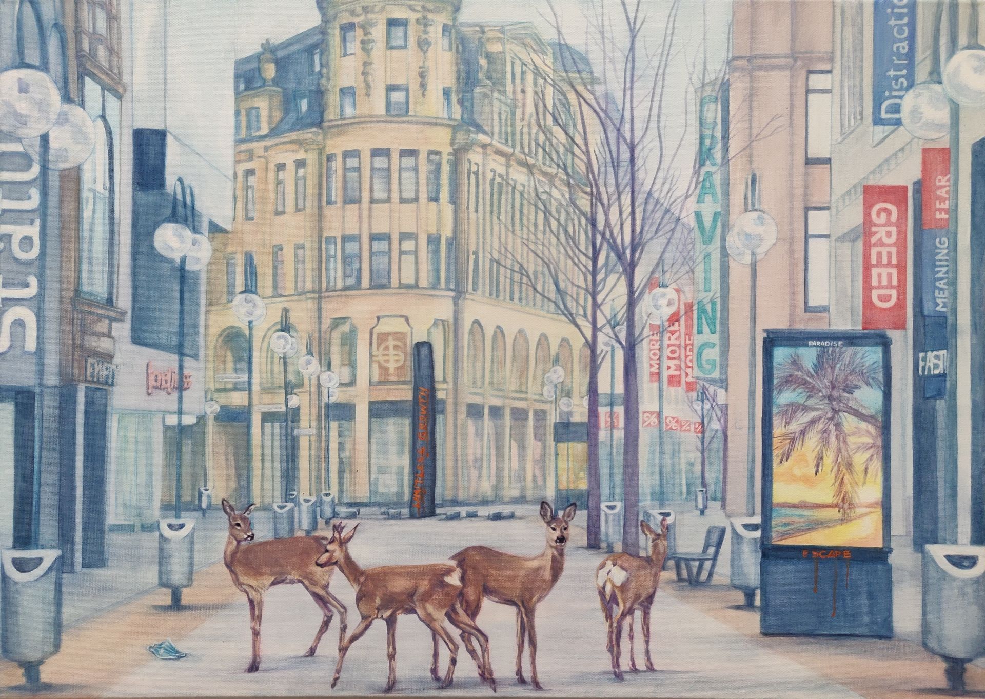 They can’t read (Lockdown Schildergasse) (2022), Acryl auf Leinwand, 50 x 70cmIntegrieren (Serie „Lebenslust“), (2022), Acryl auf Leinwand, 25 x 30cmAnkommen (Serie „Lebenslust“), (2022), Acryl auf Leinwand, 25 x 30cmPasskontrolle (2014), Acryl und Collage auf Leinwand, 50 x 60cm.Eine frühe Kindheitserinnerung (2014), Acryl und Transfertechnik auf Leinwand, 40 x 60cm.„Sie sind doch Estin!“ (2014), Acryl auf Leinwand, 120 x 140cm.Berliner Schwestern (2014), Acryl und Collage auf Leinwand, 80 x 60cm.Berlin, Berlin (2014), Acryl und Collage auf Leinwand, 140 x 120cm.Hülle (2014), Acryl und Collage auf Leinwand, 80 x 60cm.„Ich bin Kirgisin“ I (2014), Acryl und Collage auf Leinwand, 100 x 100cm.„Ich bin Kirgisin“ II (2014), Acryl und Collage auf Leinwand, 100 x 100cm.Schwestern- Gnadenfeld im Ural I (2014), Acryl und Collage auf Leinwand, 40 x 30cm.Schwestern- Gnadenfeld im Ural II (2014), Acryl und Collage auf Leinwand, 40 x 30cm.Zeitbrücken – eine fiktive Begegnung (2015), Acryl auf Leinwand, 150 x 180 cmMalus sieversii – Auf der Suche nach dem Garten Eden (2013), Mischtechnik auf Papier, 160 x 110cmRoter Fluss – Manchmal fällt der Apfel weiter als man denkt (2014), Mischtechnik auf Papier, 110 x 90cmAsien trifft auf Europa – Neyfeld im Ural (2014), Mischtechnik auf Papier, 110 x 60cmKarlsruhe am Schwarzen Meer (2014), Mischtechnik auf Papier, 110 x 60cmEwiger Sommer II (2011), Acryl auf Papier, 70 x 100cmEwiger Sommer I (2011), Acryl auf Papier, 70 x 100cmEternal Sunshine (2014), Acryl auf Leinwand, 40 x 40cmDas schönste Geräusch der Welt I (2013), Acryl auf Leinwand, 50 x 60cmDas schönste Geräusch der Welt II (2013), Acryl auf Leinwand, 40 x 60cm
